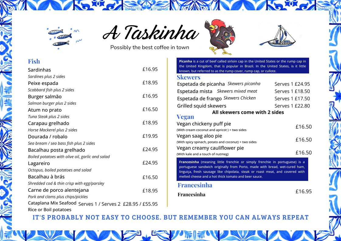 Introducing the Menu at A Taskinha
