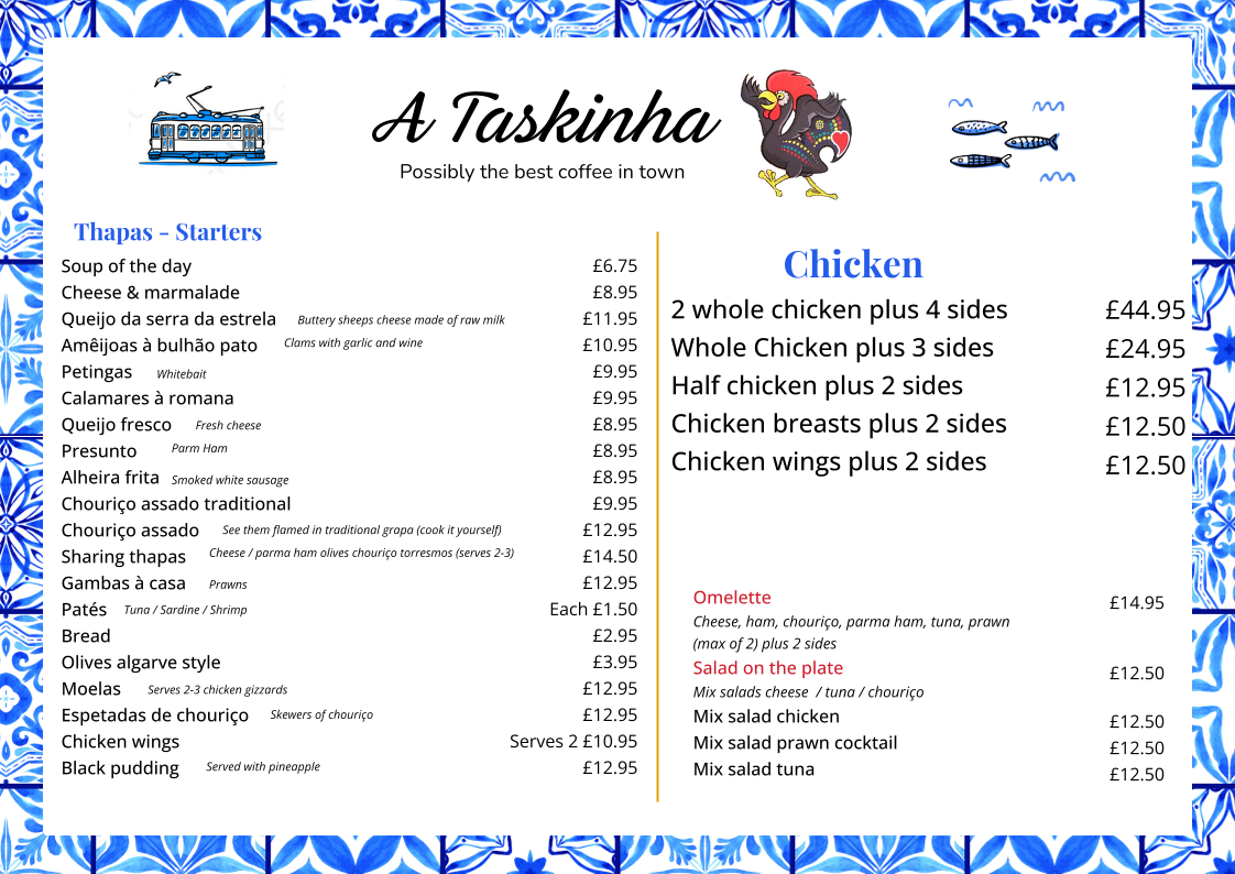 Welcome to A Taskinha, a hidden gem located at 53 Union St, Stonehouse, Plymouth. Specializing in authentic Portuguese cuisine, this charming café combines warm hospitality with a delightful selection of dishes that pay homage to traditional flavors.