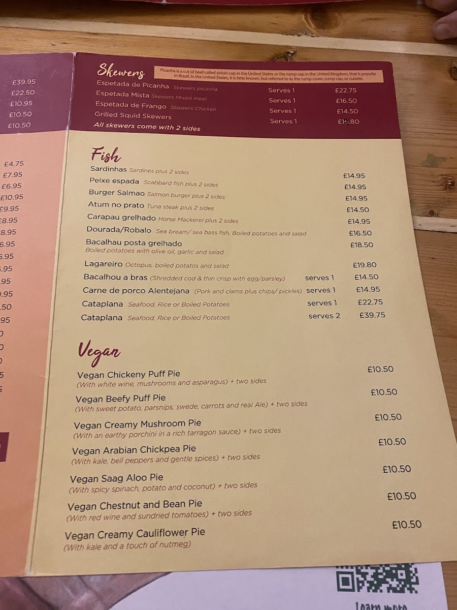 - Pork Dishes: Indulge in Piano Pork Ribs or the savory Bitoque, featuring juicy pork steak served with chips and salad—all for just £16.95.